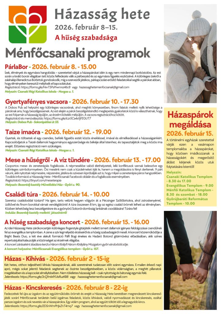 Ménfő | hétfő 07:00 Szentségimádás és gyóntatás minden csütörtökön 17:00-tól Figyelem! Januárban és februárban a hétköznapi eseményeket a plébánián tartjuk a hidegre való tekintettel. |