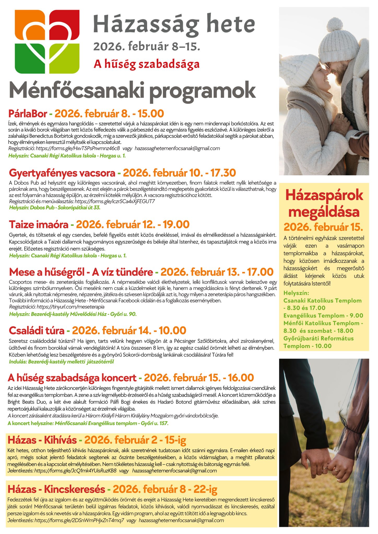 Szolgálatok időpontjai: